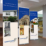 Außenwerbung und Beschilderung I Broschüren I Illustrationen I Einladungskarten I Flyer und Folder I Geschäftspapiere I Messestände I Werbeartikel I Anzeigen